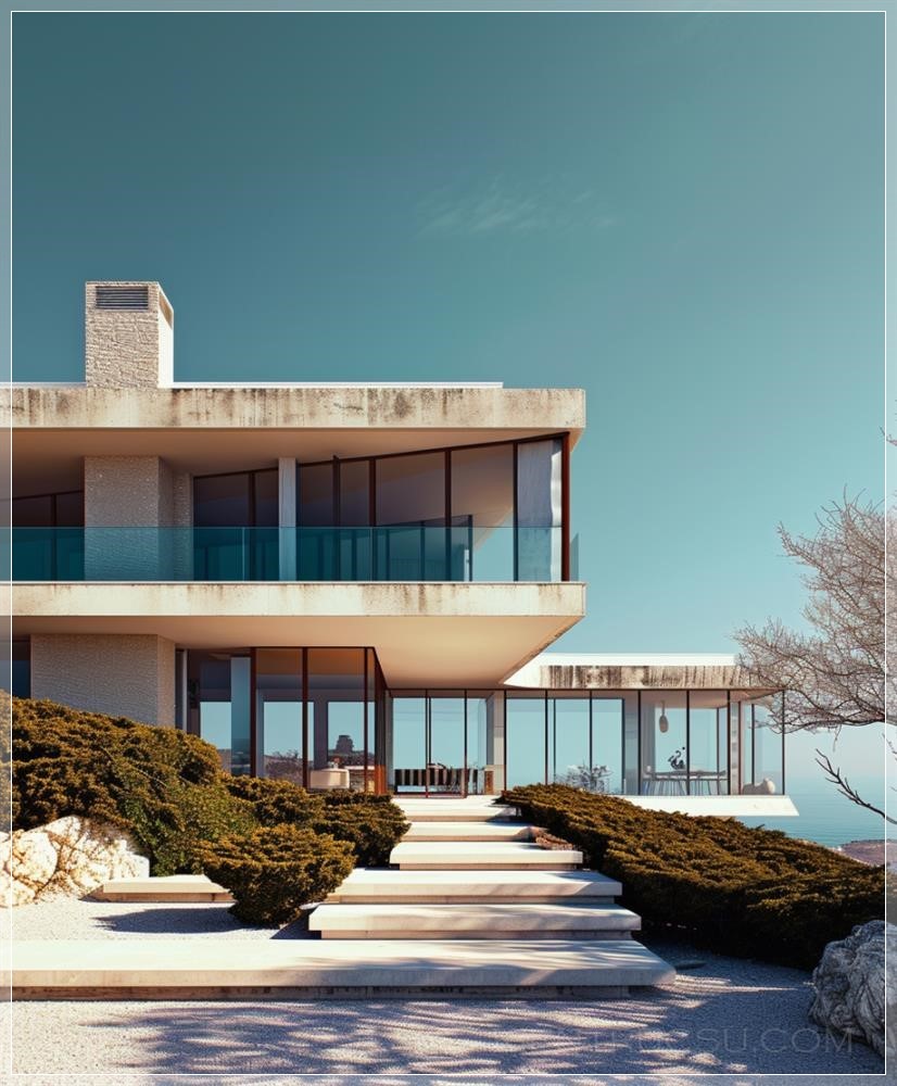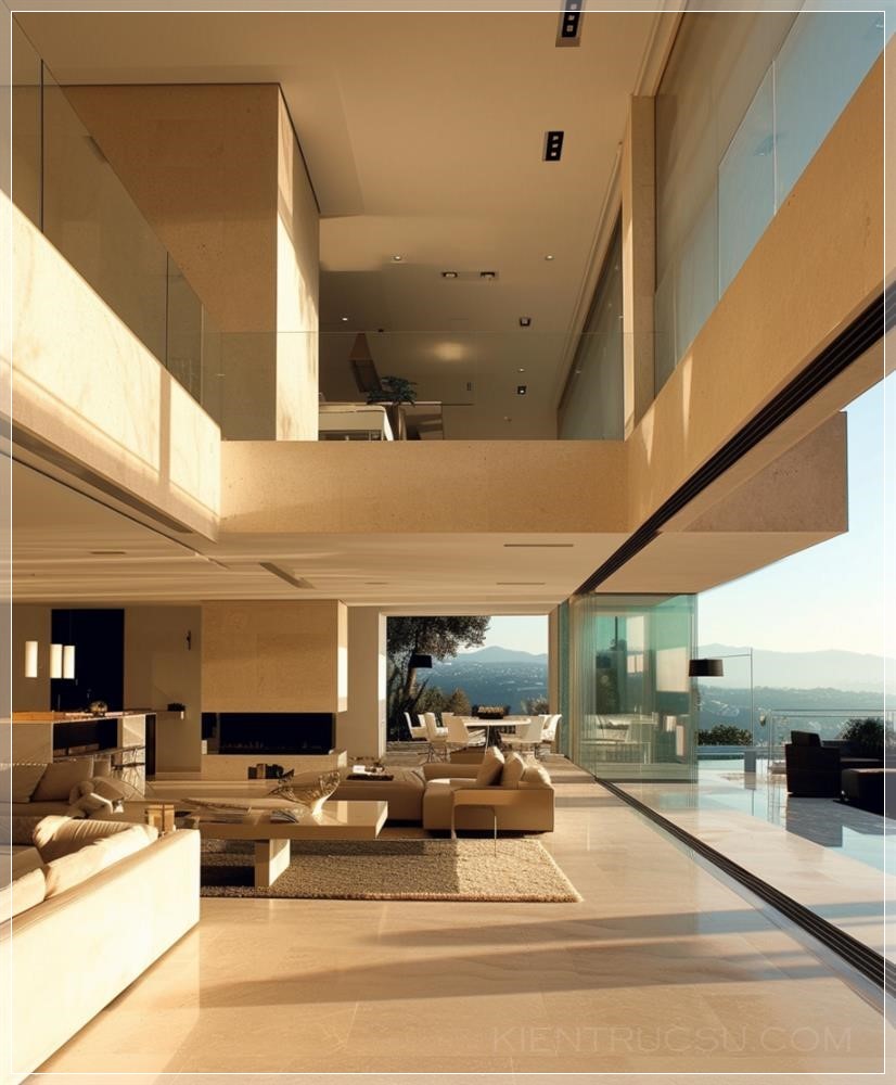 PROMPT: a house with modern design features and a view, in the style of light beige and emerald, architectonic --ar 107:128 --v 6.0 Ý Nghĩa: