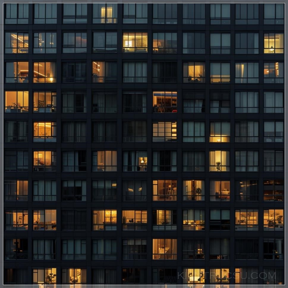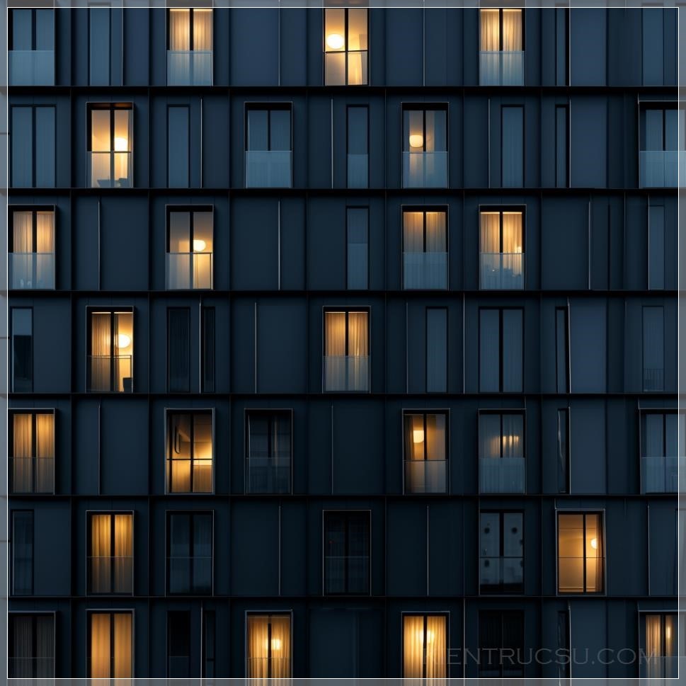PROMPT: black seamless glass building texture, night time with window lights on in random rooms that look small --v 6.0 Ý Nghĩa: