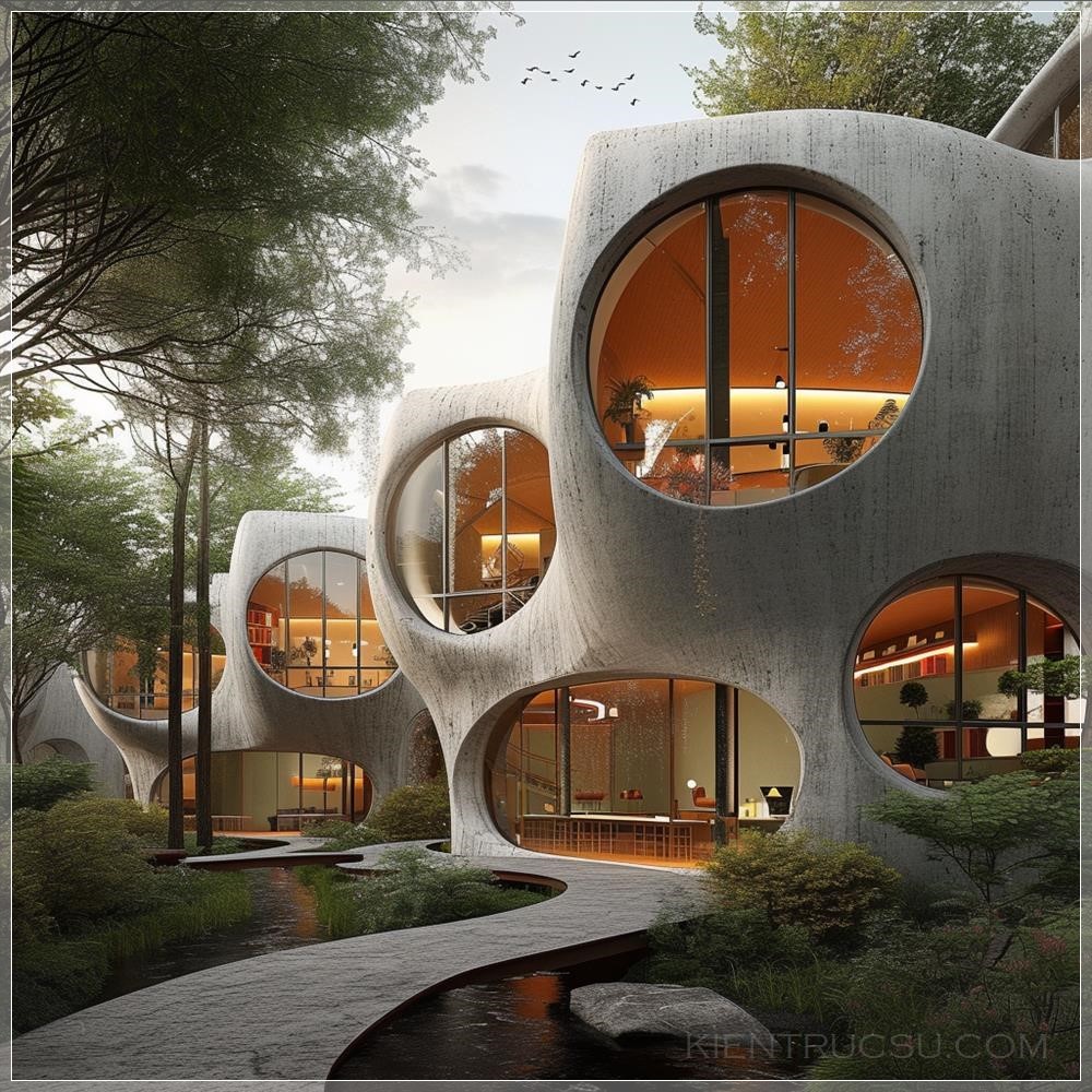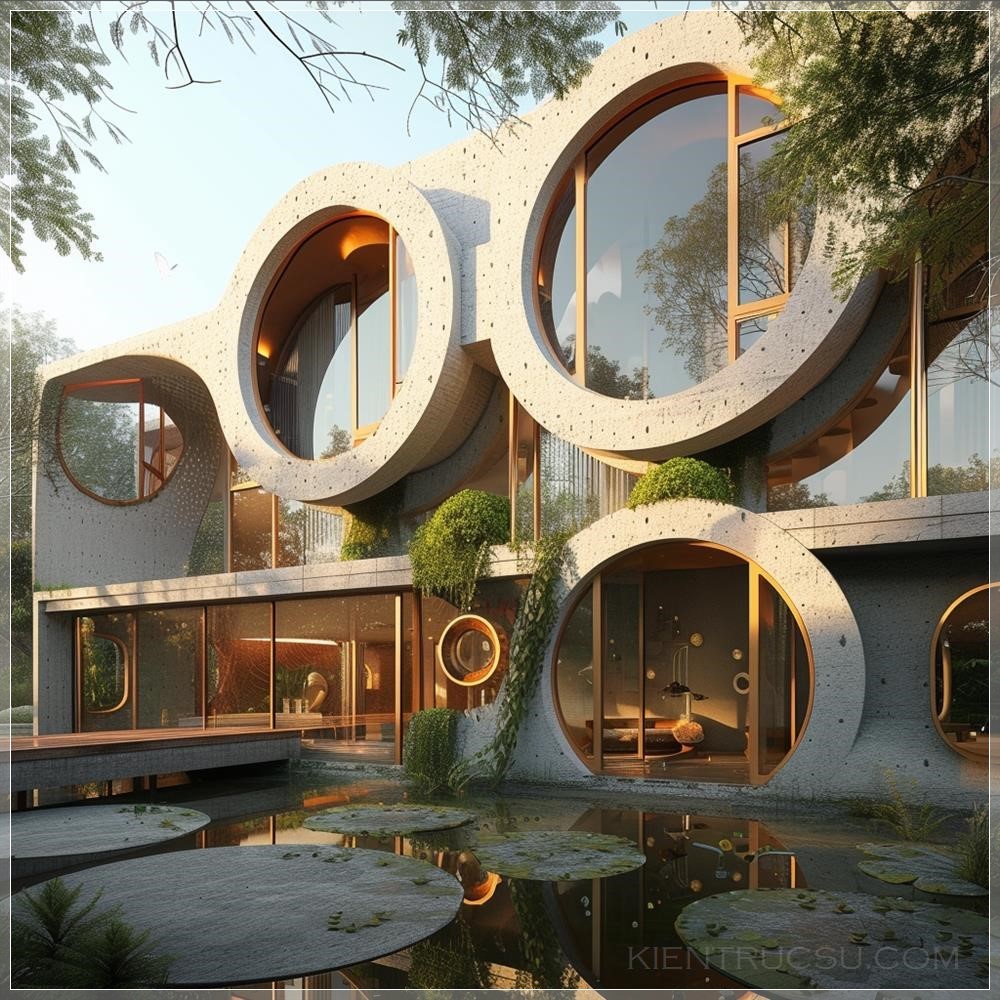 PROMPT: uma faixada de um prédio que tenha o conceito de círculos redondos e movimentos --v 6.0 Ý Nghĩa: