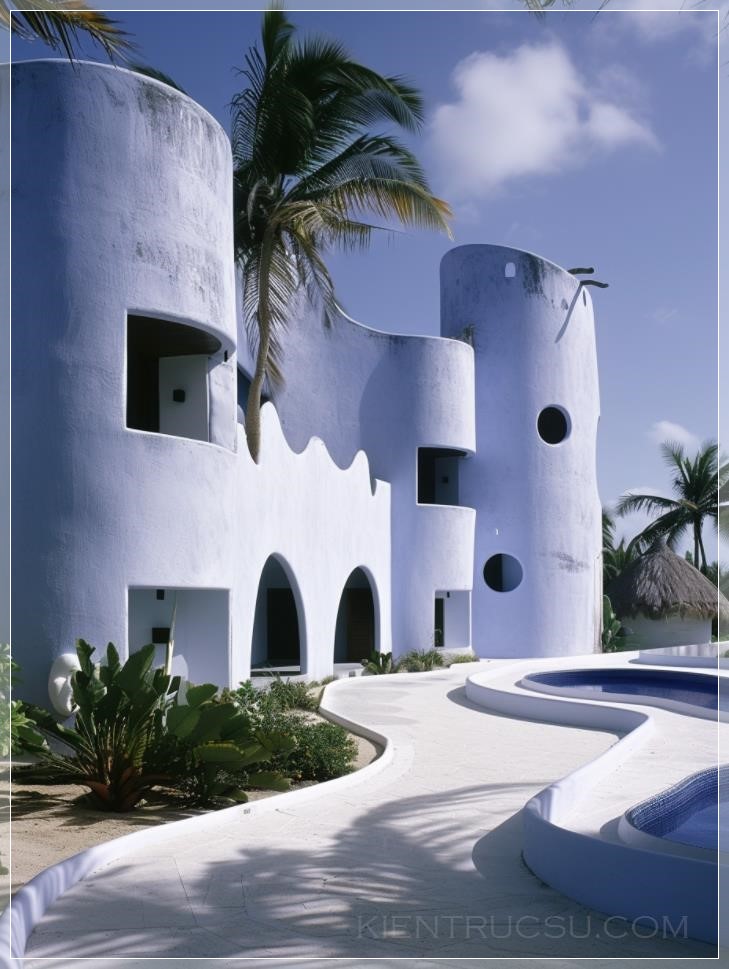 PROMPT: ellen4551Geoffrey_Bawa_designed_the_building_white_ blue_walls _natur_punta cana --ar 3:4 --v 6.0 Ý Nghĩa: