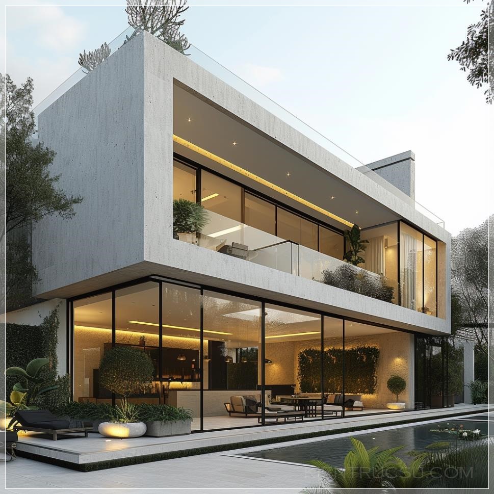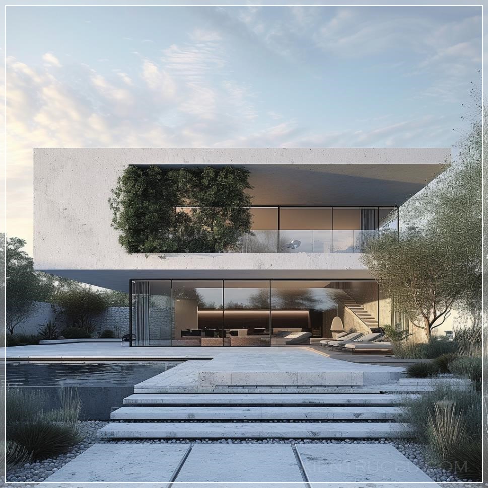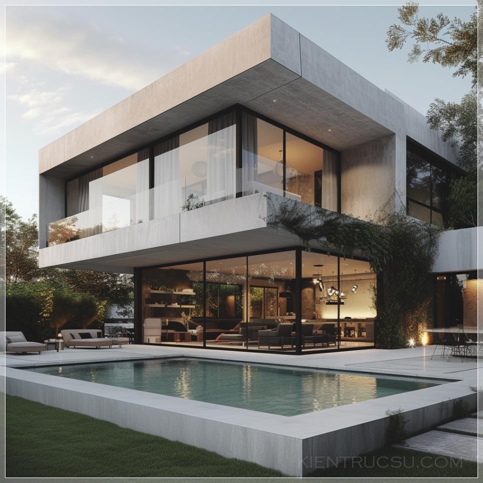 PROMPT: Villa , extrior , moderin ,simple, morning render , 2 floor , stone , concret , white color , pool ,gardein --v 6.0 Ý Nghĩa: