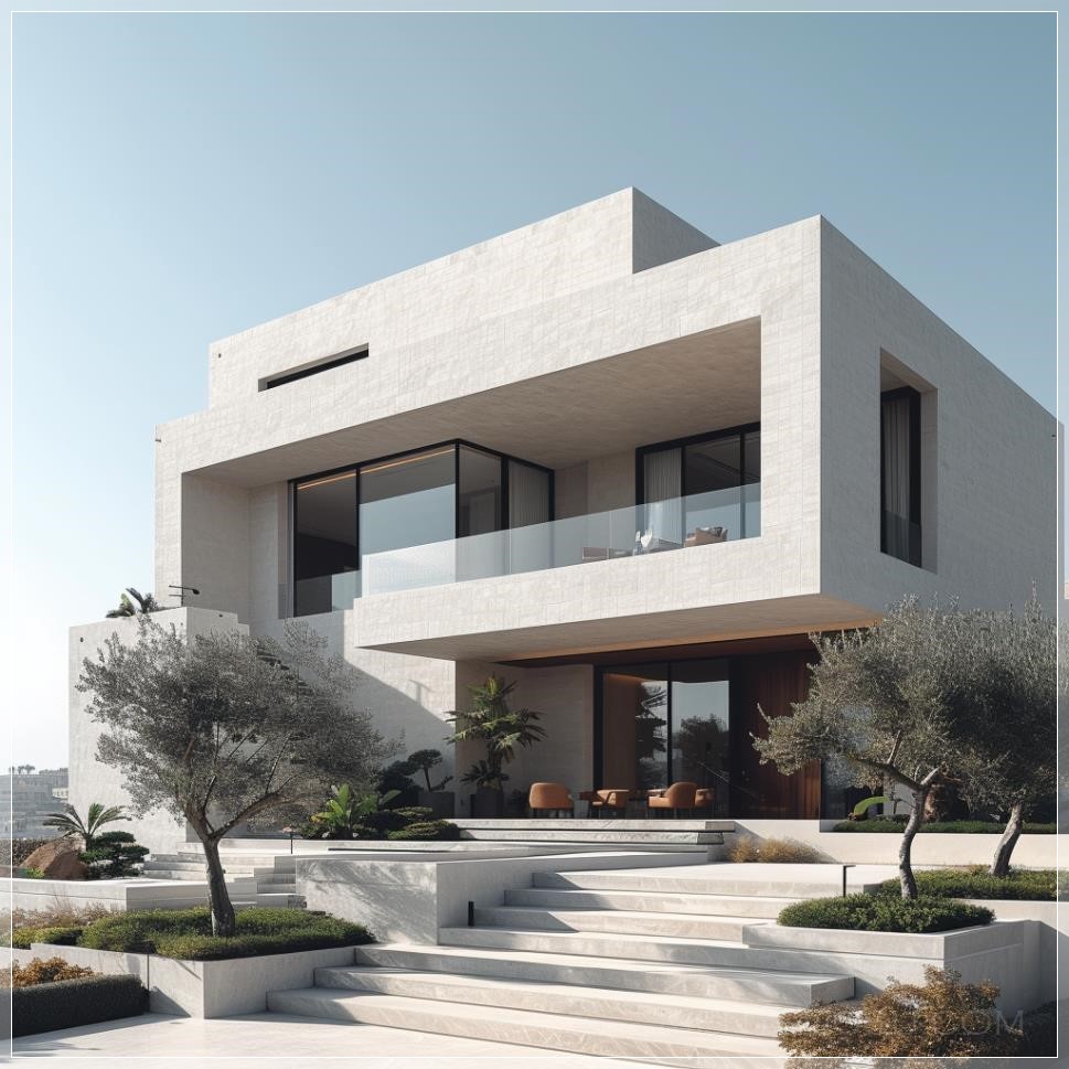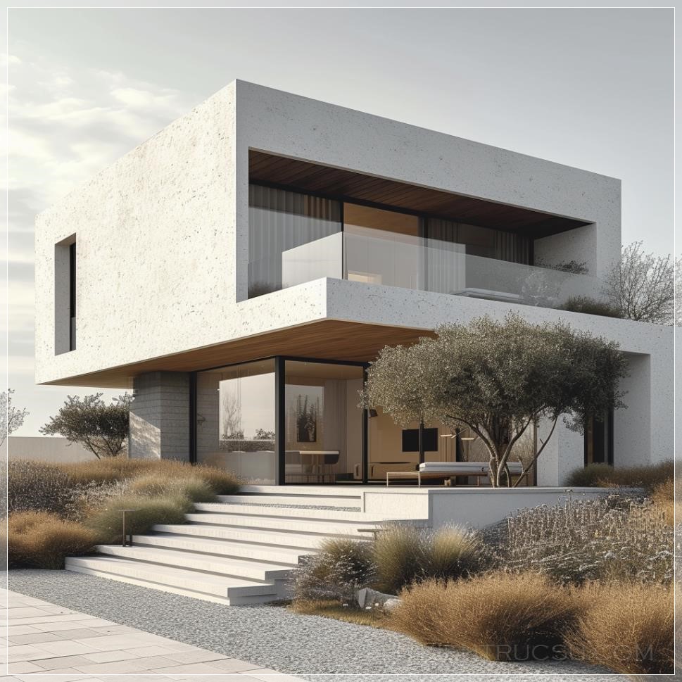 PROMPT: a white modern house on a street, in the style of minimalist sculptures, quito school, landscape inspirations, symmetrical design, monochromatic color scheme, stanisław wyspiański, high detail --s 750 --v 6.0 Ý Nghĩa: