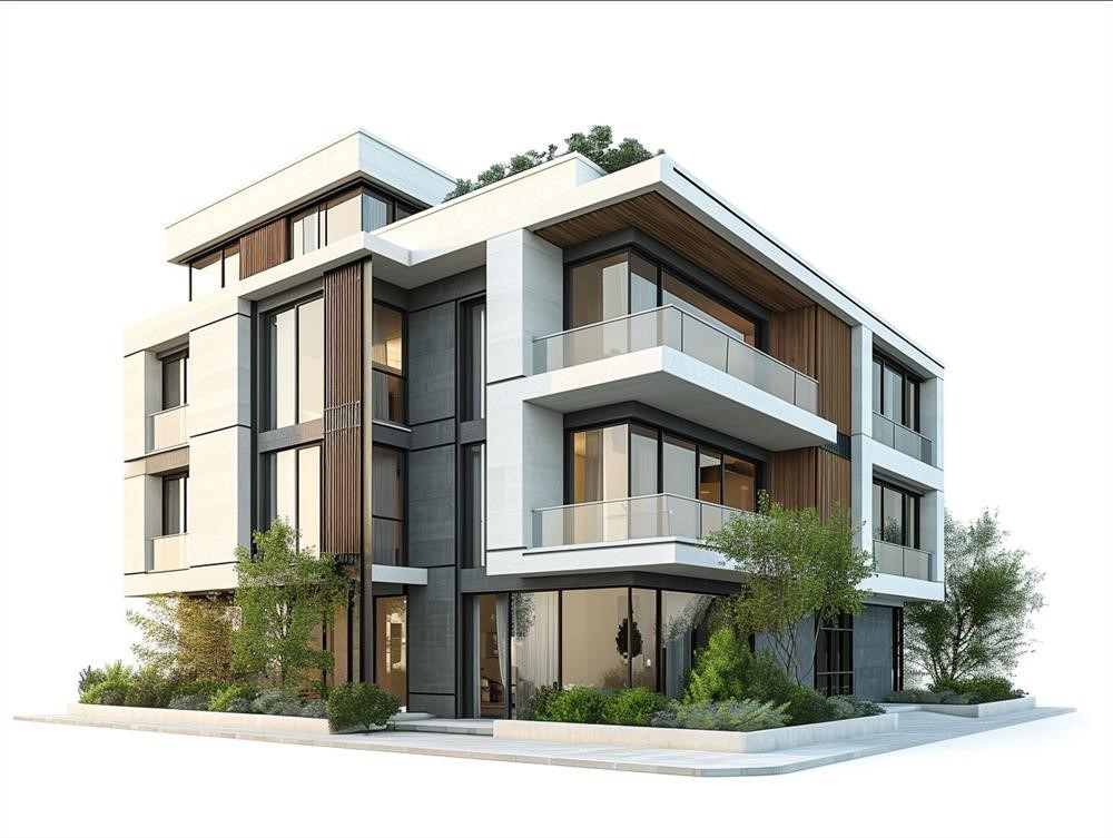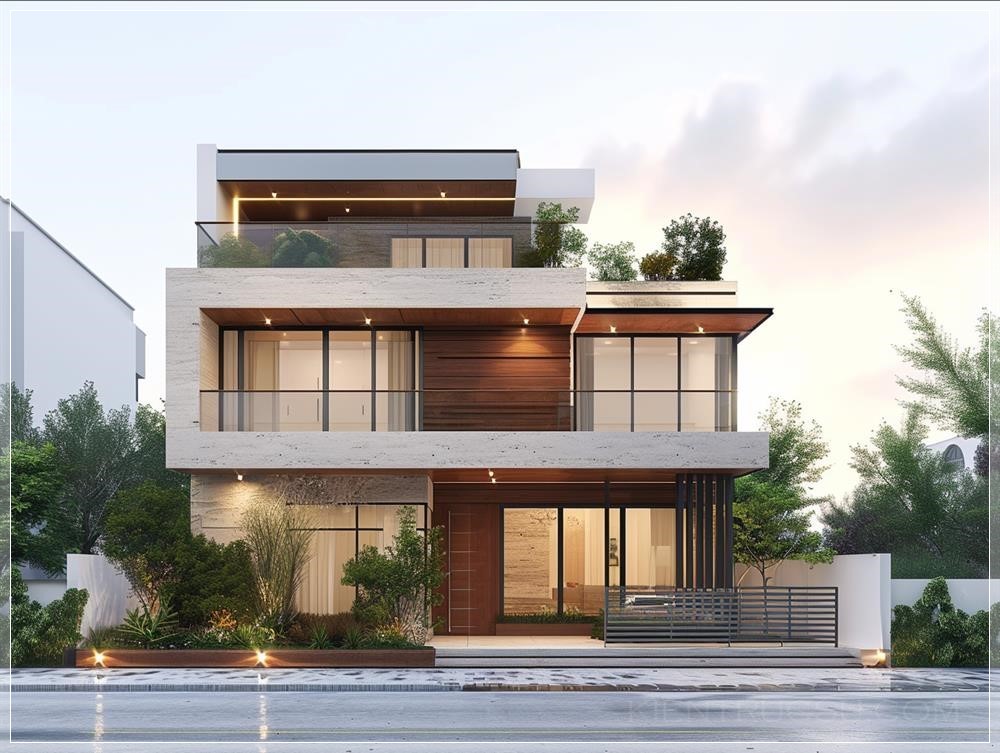 PROMPT: modern medium three story house , in the style of dark white and light beige, hurufiyya, high-constrast realism, precisionist, piles/stacks, light gray and light brown --ar 4:3 --v 6.0 --style raw --s 150 Ý Nghĩa: