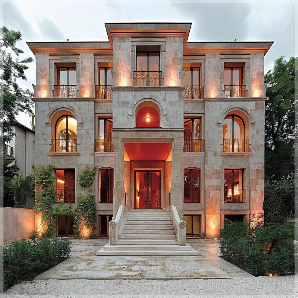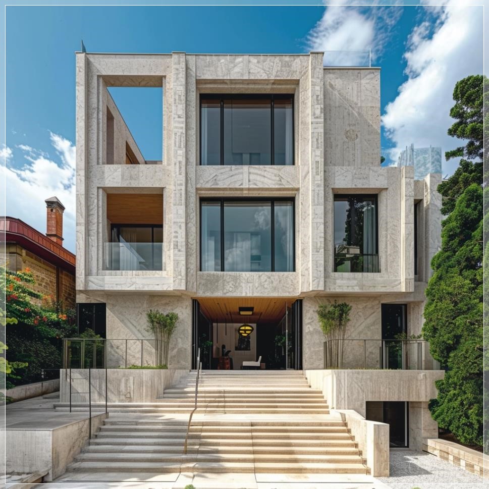The symmetrical facade of the Bosphorus Strait in a traditional Turkish style:: 2 of bio - bio - distortion and rounding of details, made of monolithic concrete, has a light, plastered coating of the angle from the sea --v 6.0 --style raw --s 750 --chaos 15 --weird 25
