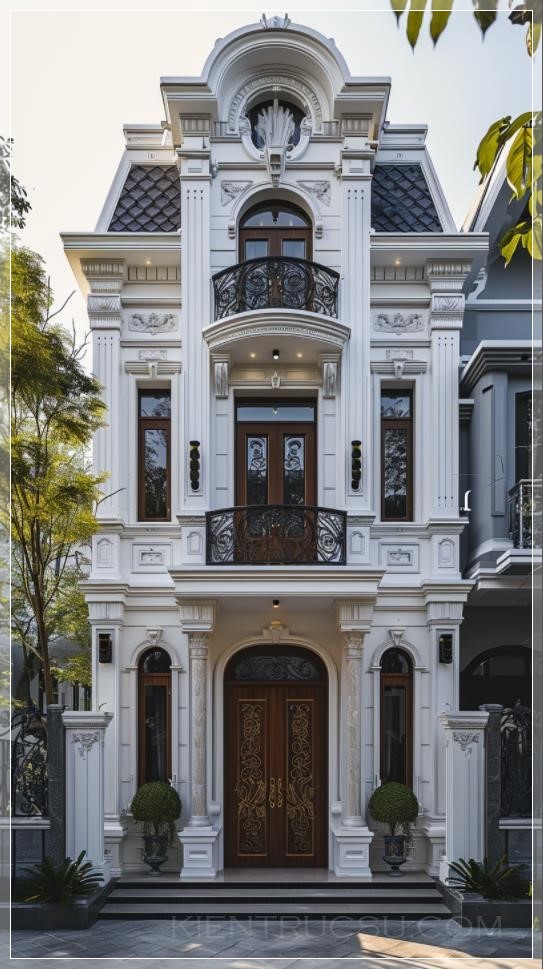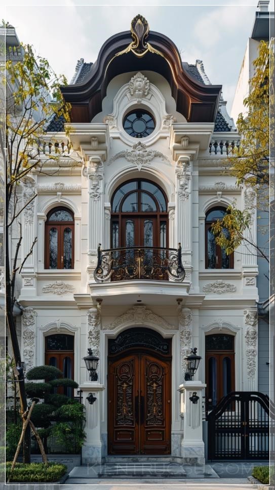 PROMPT: traditional style wooden homes hanoi, in the style of light white and dark bronze, art nouveau decorative style, 32k uhd, dark white and light gray, vergvoktre, sculptural aesthetics, symmetrical design, no plant --ar 9:16 --v 6.0 Ý Nghĩa: