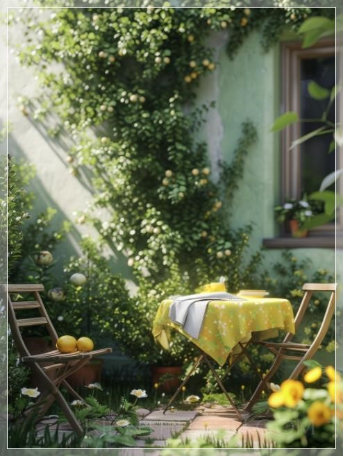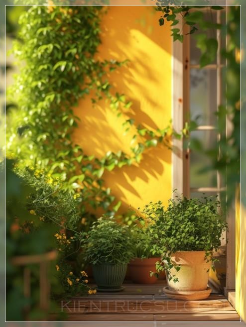 PROMPT: ultra-high image,a small cozy terrace garden,light green and yellow colors,natural light,fresh and bright background,blender and C4D Render, Nikon D850, 35mm f/1.4G lens, f/4 --ar 3:4 --v 6.0 Ý Nghĩa:
