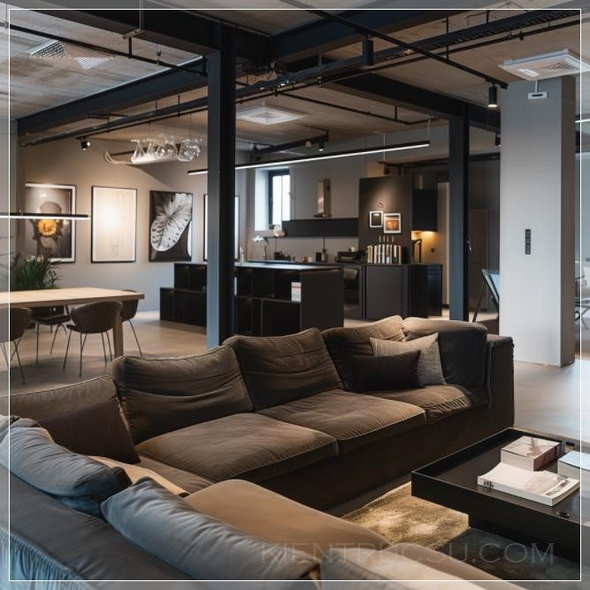 PROMPT: a modern, stylish apartment with large living area modern sofa a and a sleek workspace. Prioritize productivity, creativity, and well-being --v 6.0 Ý Nghĩa: