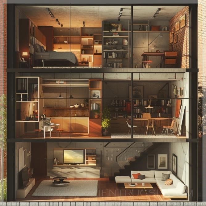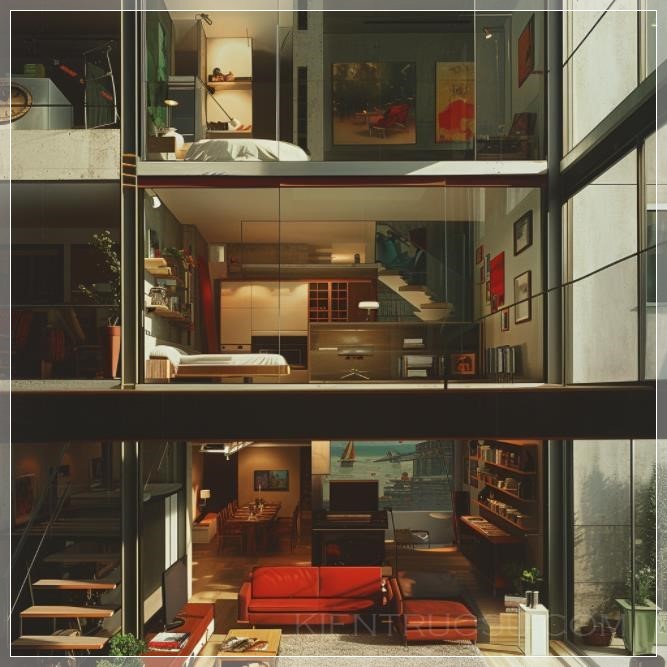 PROMPT: Apartment cross section, looking in from the window, living room --v 6.0 Ý Nghĩa: