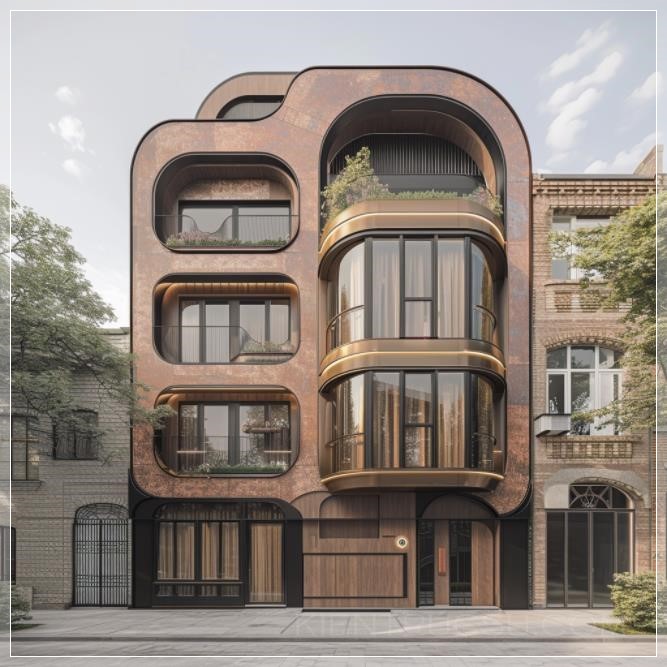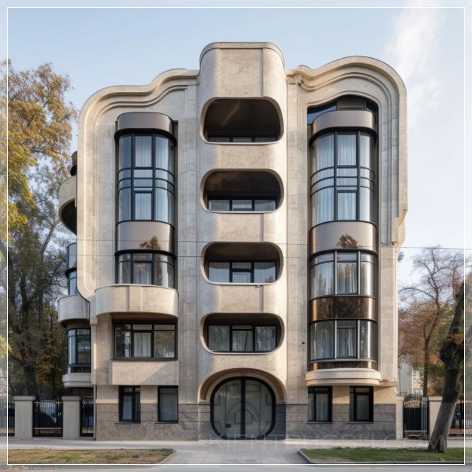 PROMPT: a 3 story housing building with a unique facade in the style of a modern art deco --v 6.0 Ý Nghĩa: