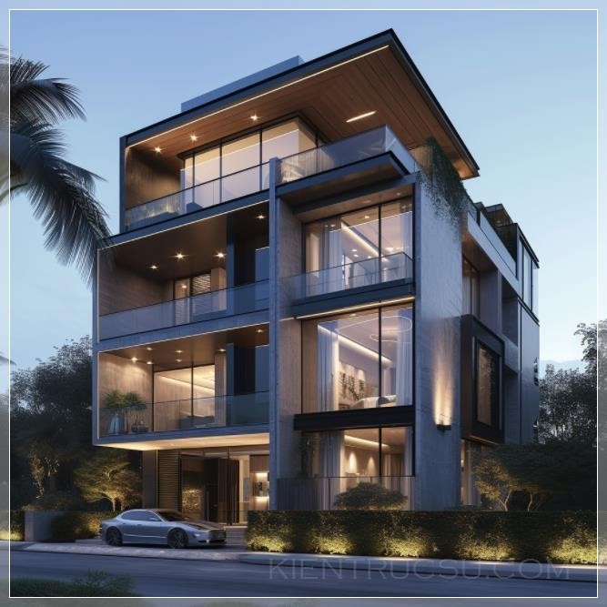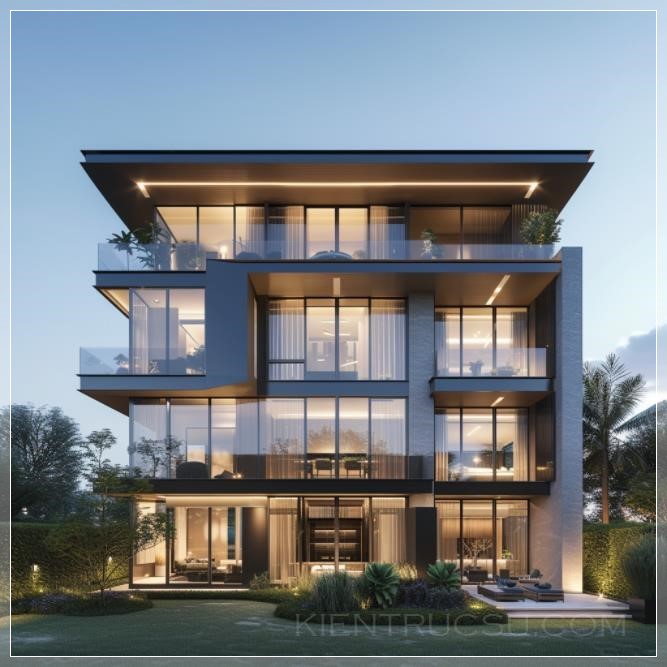 Design a modern luxury 8 floor residence building with a sleek finishing. Consider incorporating large glass windows, open-plan layout, and sophisticated minimalist exterior design to complement the overall aesthetic of the property. Additionally, focus on creating a seamless transition between areas to maximize natural light and create a sense of spaciousness. Finally, pay attention to landscaping and outdoor lighting to enhance the ambiance and create a welcoming environment for relaxation and entertainment.16k resolution visuals, aspect ratio set to 16:9, photorealistic atmosphere, cinematic light, zeiss batis 60mm, --v 6.0