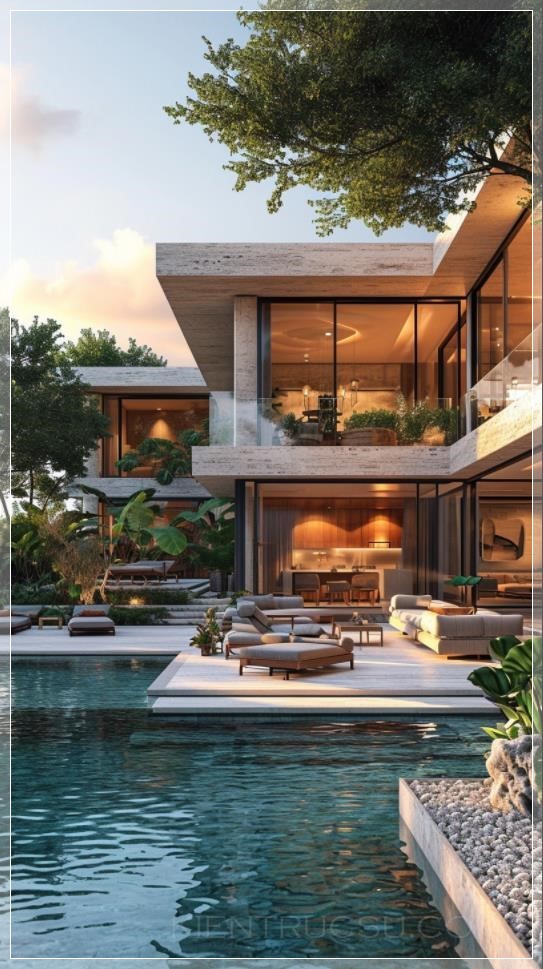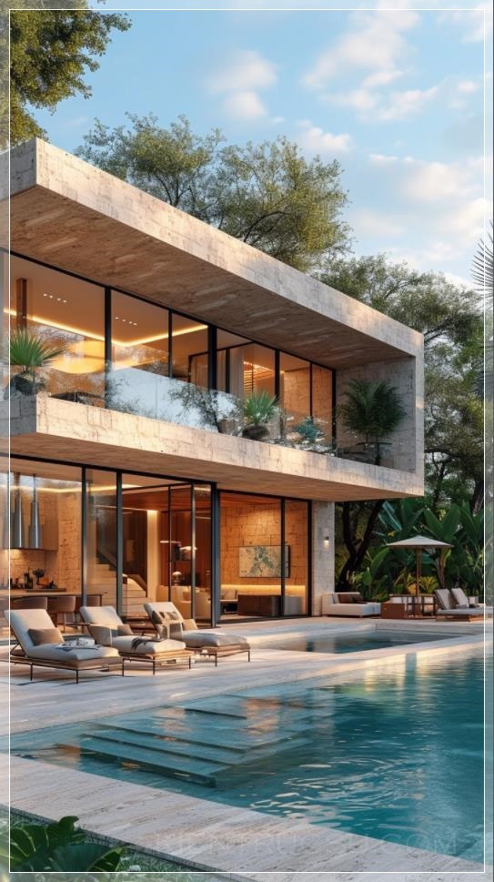 PROMPT: ultrarealistic close up photo of outdoor simple modern house, sea house with pool and sun --ar 9:16 --s 500 --v 6.0 Ý Nghĩa: