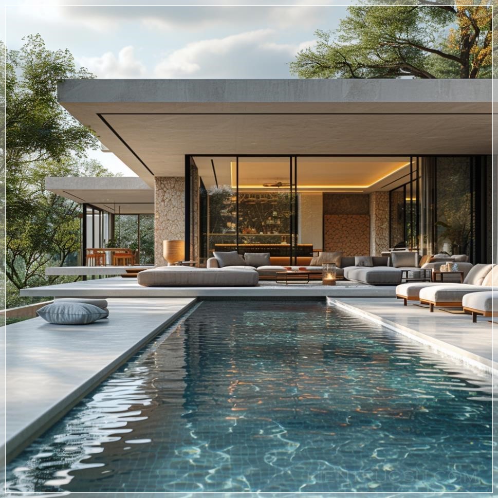 PROMPT: villa house with a modern pool, focus on pool, realistic --s 750 --v 6.0 Ý Nghĩa: