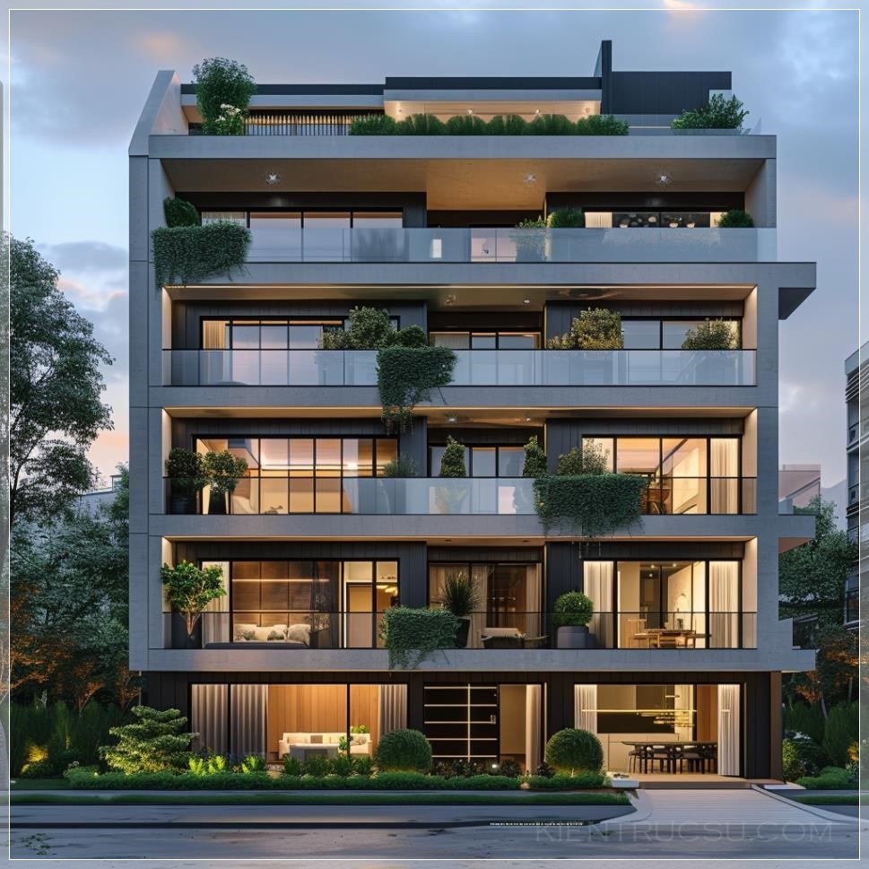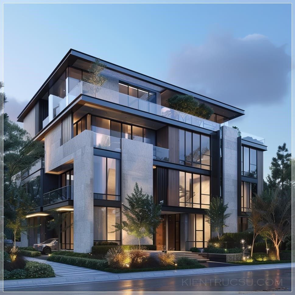 PROMPT: 3D rendering of a facade of a modern condominium house --v 6.0 Ý Nghĩa: