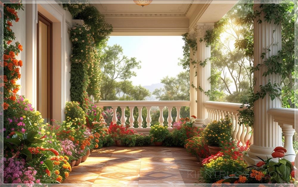 PROMPT: interior designed corinthian style patio garden for a small balcony --ar 8:5 --s 750 --v 6.0 Ý Nghĩa: