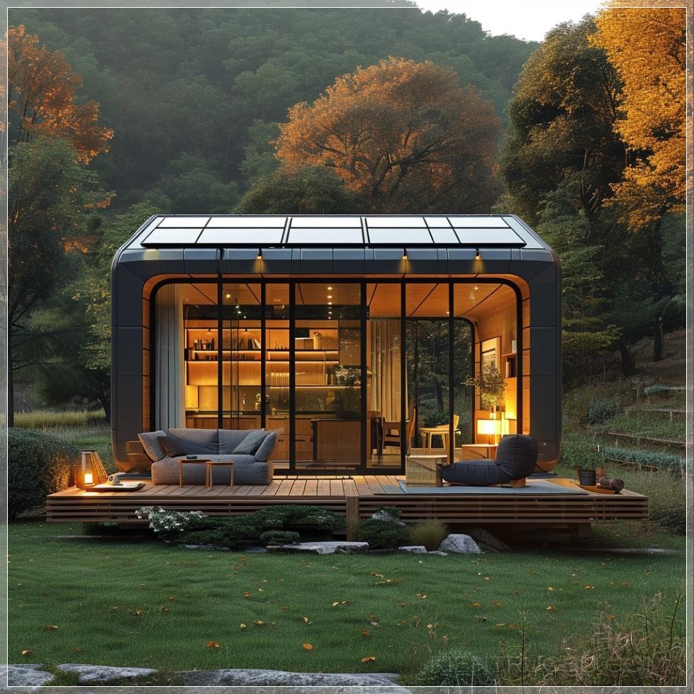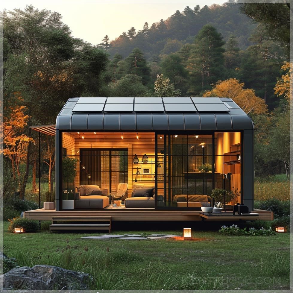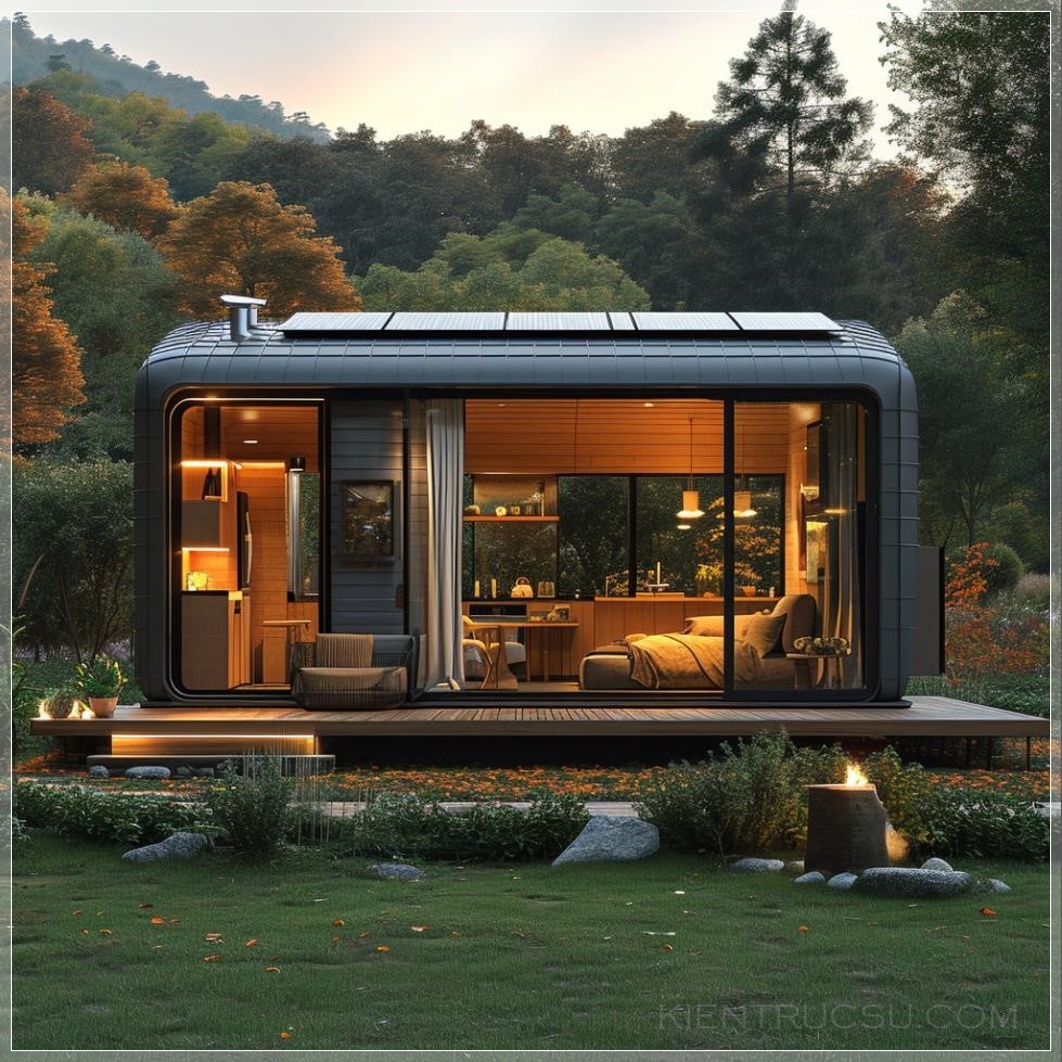 PROMPT: design a tiny off grid house for an architectural competition ,house has 25 square meter usage area, house is modular and a good solution for small living, eco friendly --v 6.0 --s 750 Ý Nghĩa: