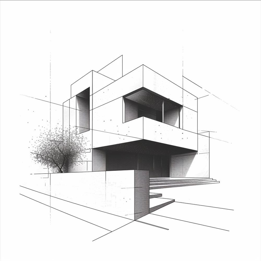Concevez un logo d'architecte élégant et moderne mettant en vedette une architecture cubique comme motif central. La conception doit intégrer l’idée d’une maison cubique de manière fluide dans l'agencement géométrique, soulignant l'interaction entre la forme et la fonction emblématique de l'architecture moderne. Le logo doit transmettre un sens de l'innovation et de la précision, avec une palette de couleurs minimaliste (bleu et gris) pour mettre en évidence les éléments structurels. Les formes cubiques pourraient être disposées pour suggérer la profondeur et la perspective. La composition finale devrait être propre, avec des lignes nettes et une mise en page équilibrée, la rendant appropriée pour le branding et l'identité professionnelle dans l'industrie de l'architecture. Ajoute un arbre vert --v 6.0