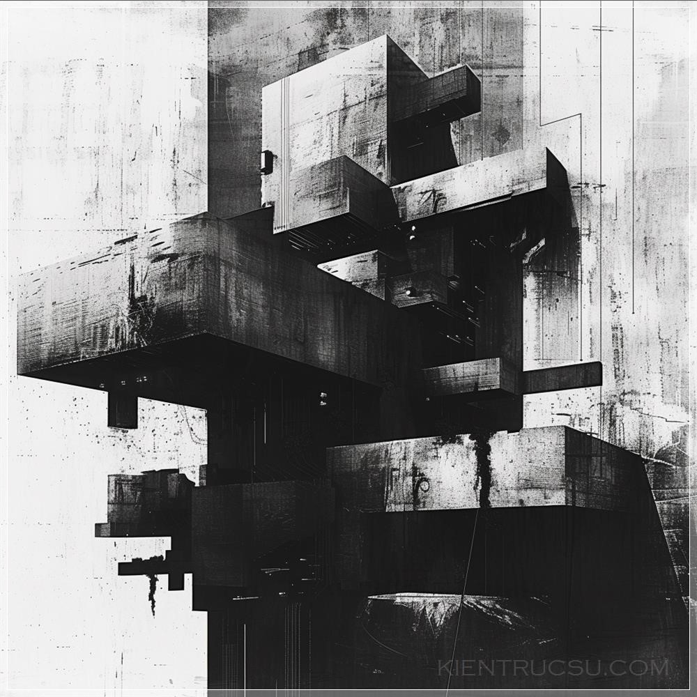 PROMPT: graphic design glitch industrial brutalist design black and white --s 250 --v 6.0 Ý Nghĩa:
