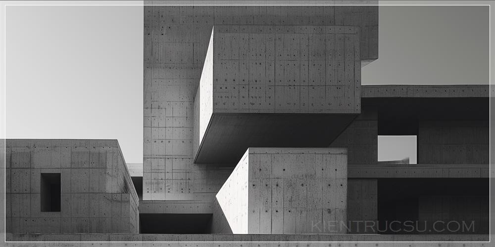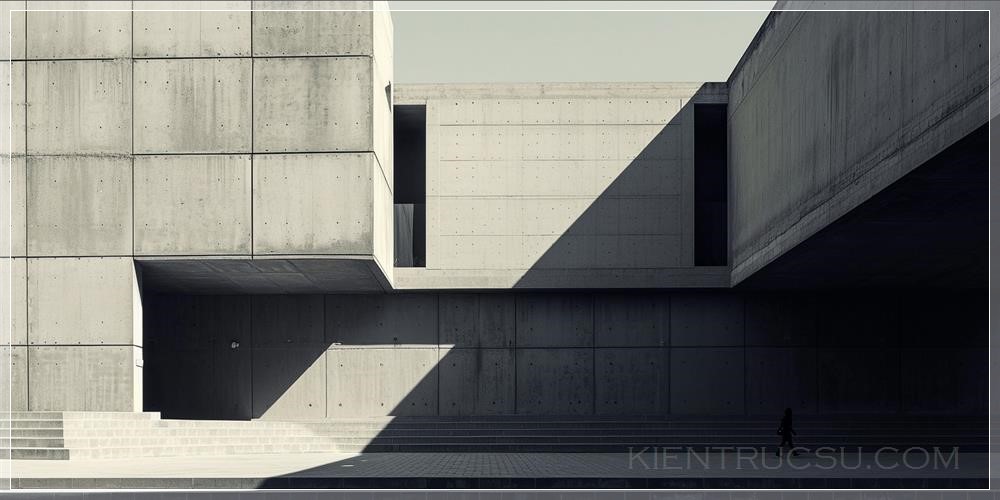 PROMPT: surreal minimal geometric brutalist concrete buildings, natural contrasting light --ar 2:1 --v 6.0 Ý Nghĩa: