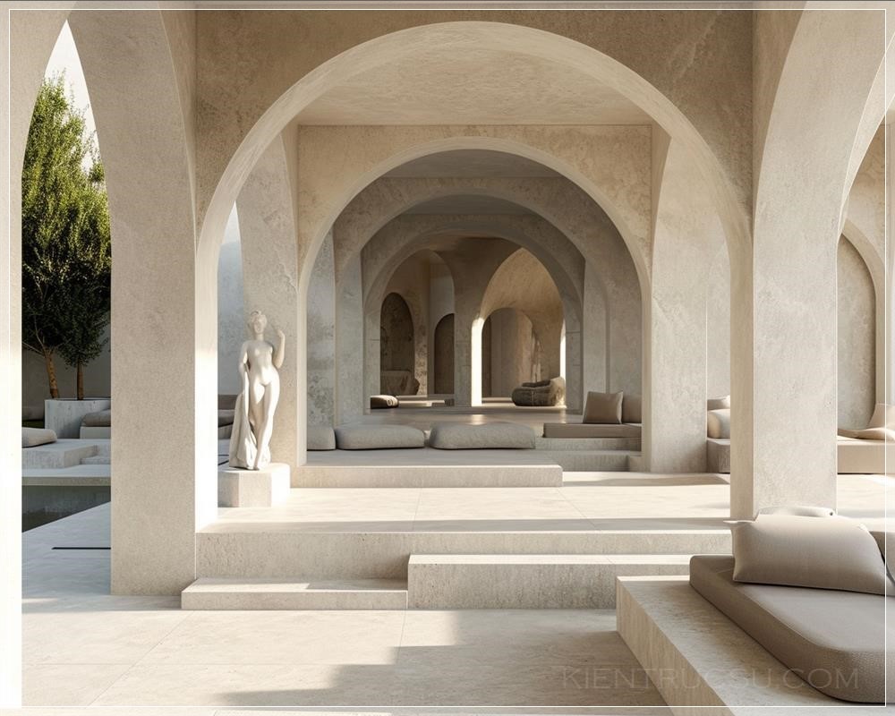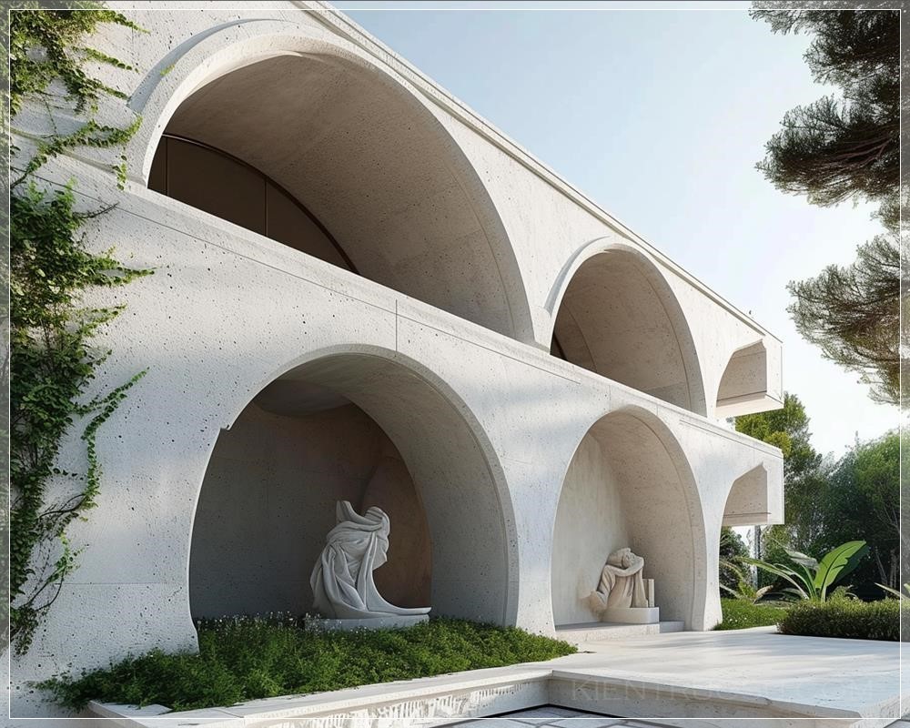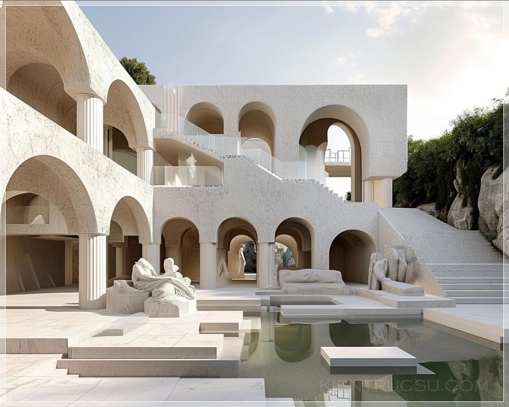 PROMPT: a modern villa made from roman ruins and Greek ruins, arches, Greek art and architecture, carvings --v 6.0 --s 50 --ar 5:4 Ý Nghĩa: