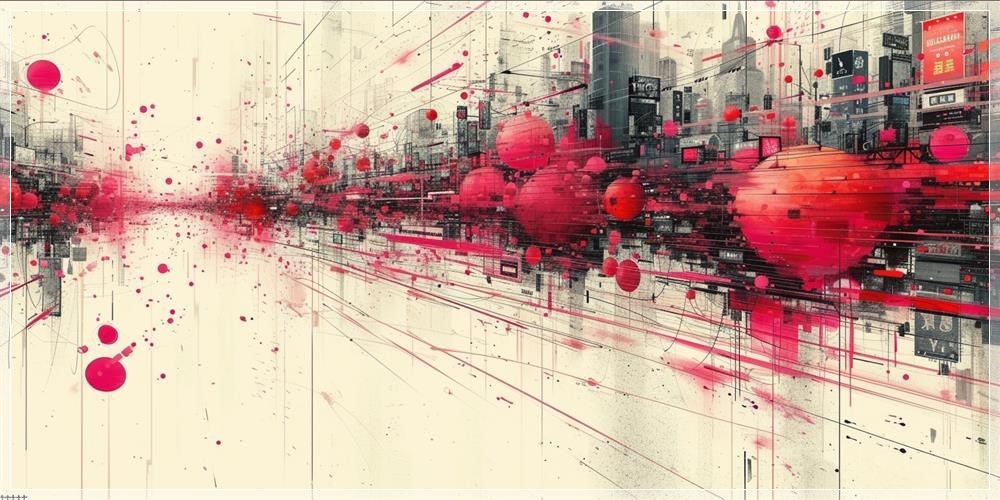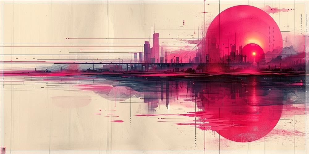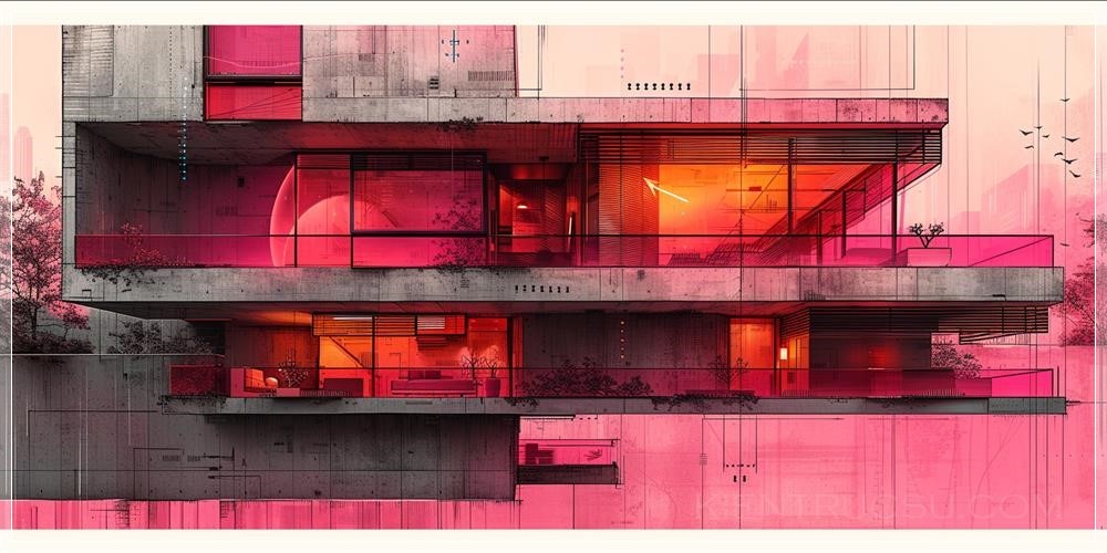an intricate and highly detailed digital abstract artwork done in tones of black and pink with dynamic lighting and "+++" somewhere, suburban scene in the style of a single continuous line drawing on a light background --ar 2:1 --stylize 1000 --v 6.0