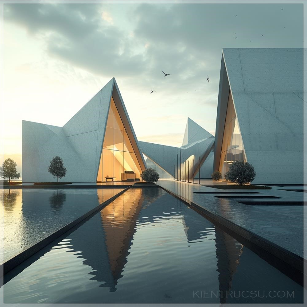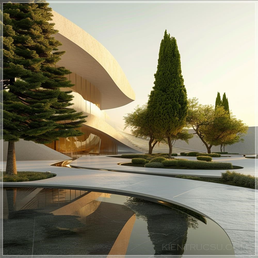 PROMPT: modern museum, synthesis architecture, Geometric, parametric, landscaping, minimal figures, hyper realistic, octane render --v 6.0 Ý Nghĩa: