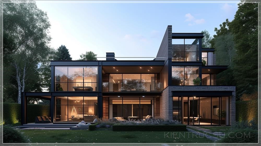 PROMPT: a modern victorian house with a glass facade --ar 16:9 --v 6.0 Ý Nghĩa: