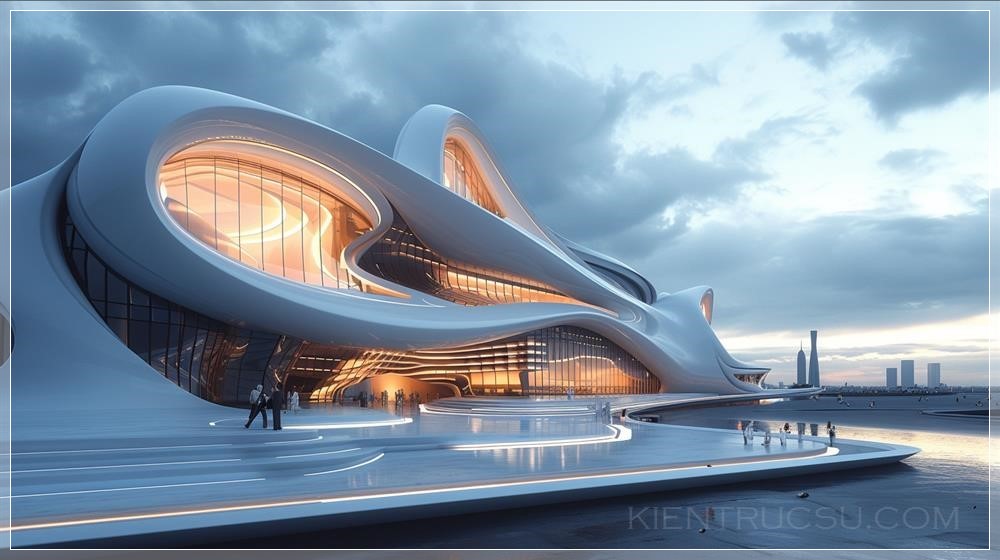 PROMPT: Meteorological Administration designed by zaha hadid, mir studio style, in city,highly detailed, --ar 16:9 --s 250 --v 6.0 Ý Nghĩa: