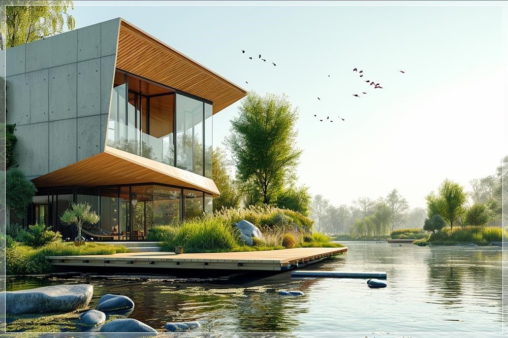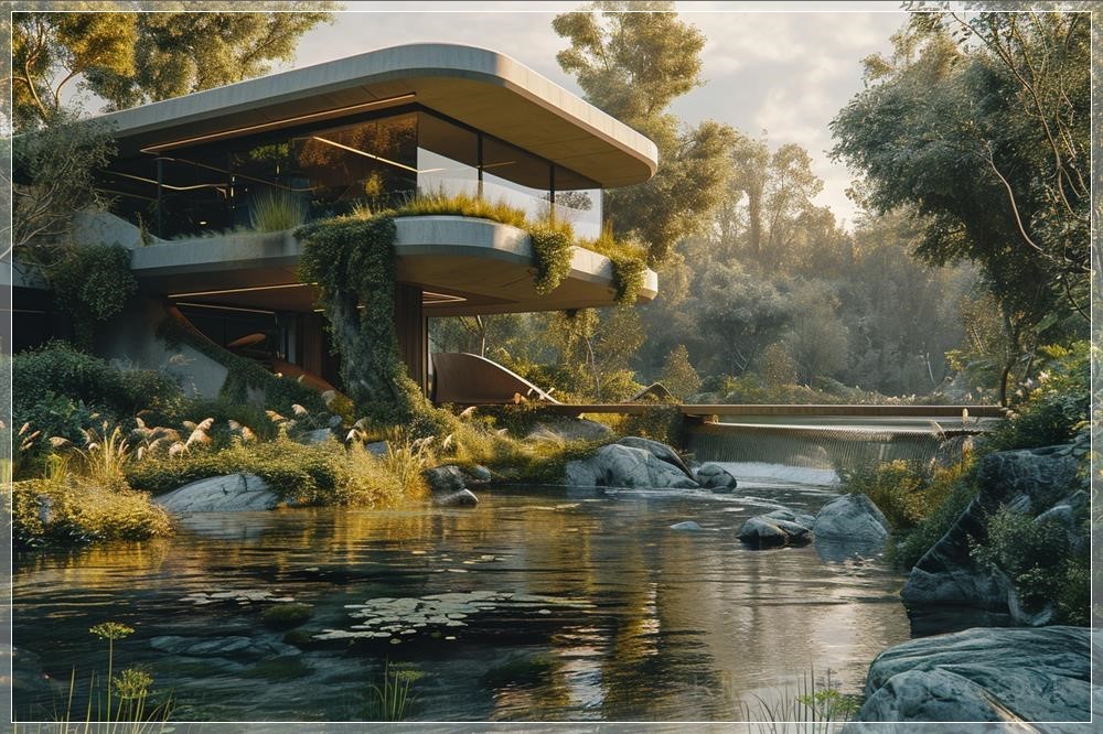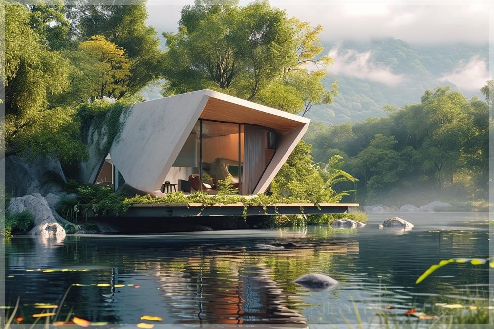 PROMPT: geometric architecture bio house, by the river in a sunny day, 8k shot --v 6.0 --ar 3:2 Ý Nghĩa: