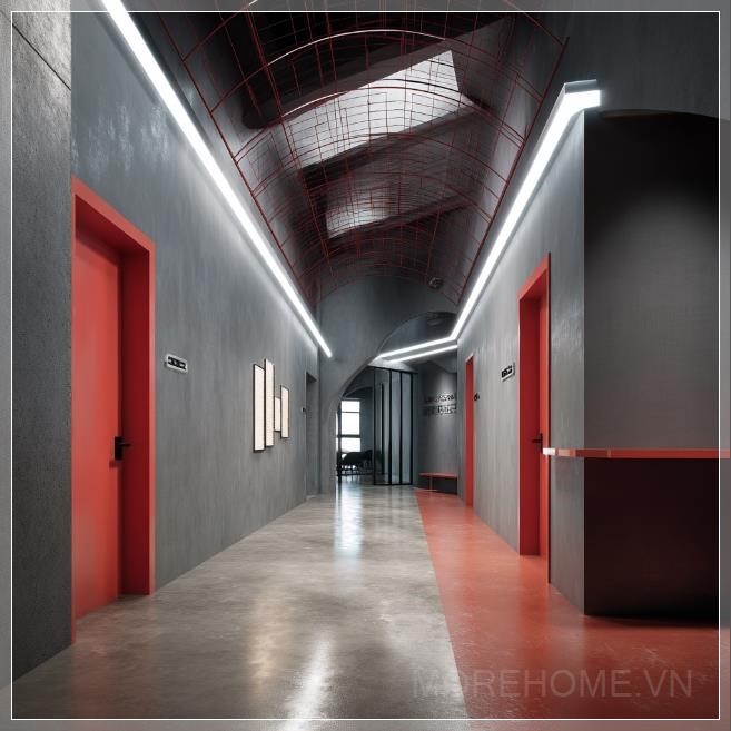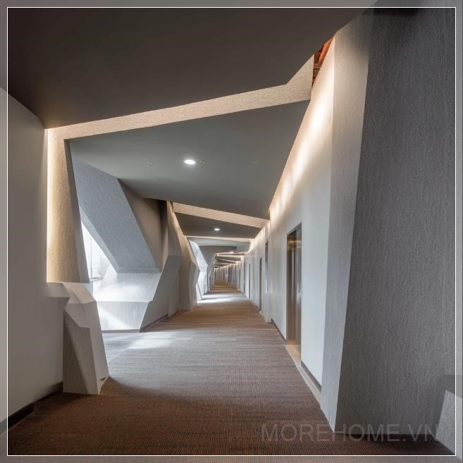 Bạn có muốn tôi viết thêm một phiên bản khác, ví dụ như mô tả chi tiết hơn về vật liệu, ánh sáng, hoặc phong cách trang trí trong hành lang này không?