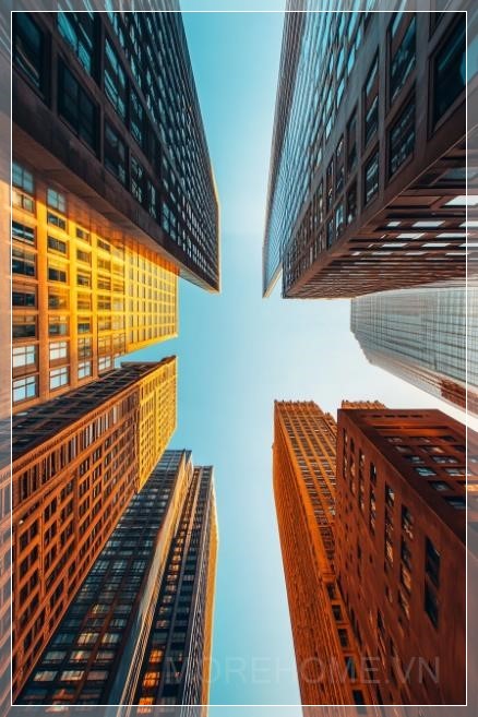 Những tòa nhà cao tầng và các tòa chọc trời là biểu tượng của sự phát triển đô thị hiện đại, với kiến trúc ấn tượng và công nghệ xây dựng tiên tiến. Những công trình này thường có hình dáng cao vút, với mặt tiền kính phản chiếu bầu trời, ánh sáng và không gian xung quanh. Các tầng lầu được thiết kế để tối ưu hóa diện tích sử dụng, đồng thời cung cấp tầm nhìn rộng mở từ trên cao. Tòa nhà cao tầng không chỉ là không gian làm việc mà còn là các điểm đến thương mại, giải trí và nghỉ dưỡng, thể hiện sự thịnh vượng và sự tiến bộ của xã hội.