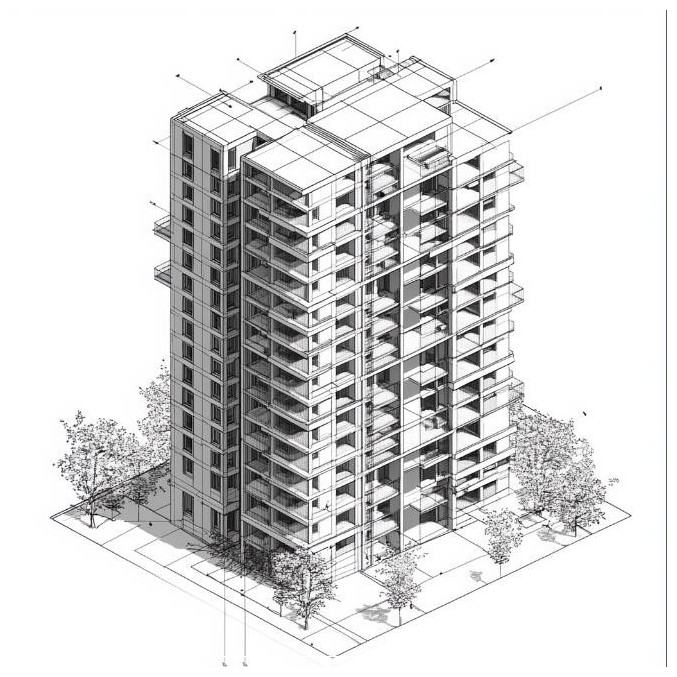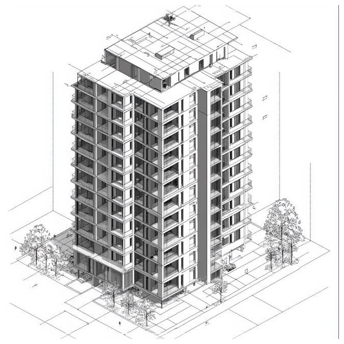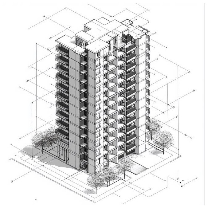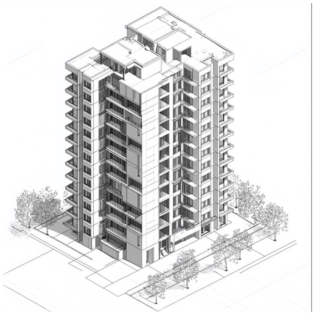 Trong không gian đô thị hiện đại, những khối nhà cao tầng trở thành biểu tượng cho sự phát triển và nhu cầu sống tại các khu vực dân cư đông đúc. Mô hình axonometric đơn giản của một khối căn hộ 12 tầng mang lại cái nhìn tổng thể về thiết kế không gian, giúp người xem hình dung rõ ràng về cách thức tổ chức các tầng lầu một cách hiệu quả và hài hòa.