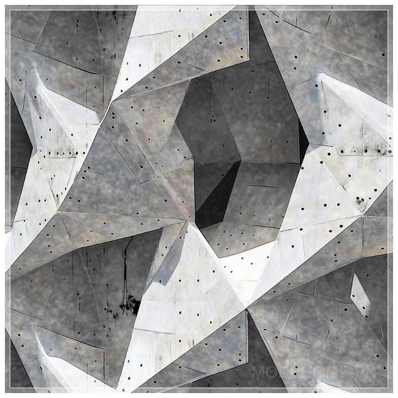 Trong không gian tối, một khung hình học với các mảng mô-đun liên kết với nhau tạo thành một cấu trúc vững chắc, mang đậm dấu ấn trừu tượng. Những tấm panel chéo nhau, tạo nên sự pha trộn giữa sự ngẫu hứng và chính xác, như những mảnh ghép chưa hoàn thiện nhưng lại toát lên sự hoàn mỹ. Mỗi góc của nó phản chiếu một sự kết hợp hoàn hảo giữa nghệ thuật và công nghệ, mang đến cảm giác của một thế giới ngoài thực tế.