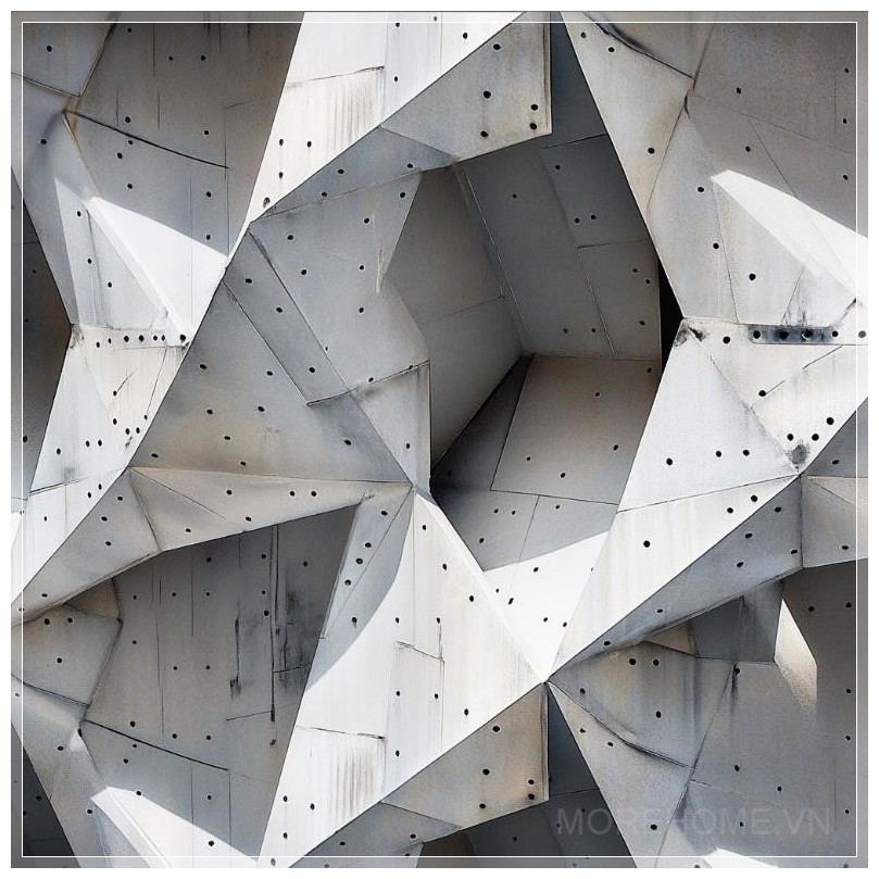 Ánh sáng phản chiếu từ các tấm mô-đun, như những tia sáng xuyên qua đêm tối, khiến mỗi chi tiết trở nên sắc nét và sống động. Cảm giác trừu tượng không chỉ xuất phát từ hình dạng của các mảng panel, mà còn từ sự chuyển động tinh tế mà chúng tạo ra khi ánh sáng và bóng tối giao thoa. Mỗi chi tiết, dù là nhỏ nhất, đều được chăm chút tỉ mỉ, làm nổi bật lên sự huyền bí trong sự đơn giản của thiết kế.
