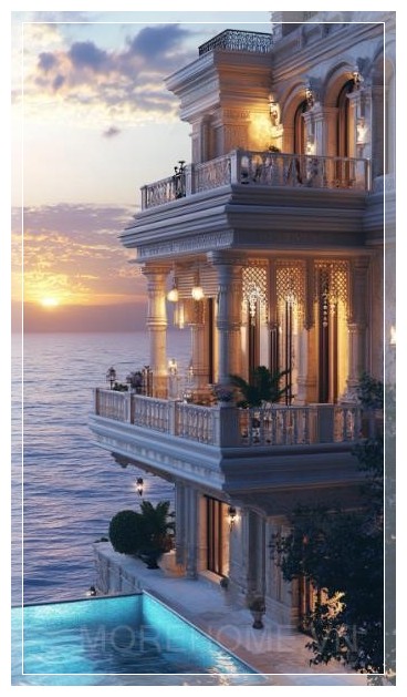 Những không gian sống rộng lớn như được bao phủ bởi ánh sáng tự nhiên, làm nổi bật lên sự tương phản giữa vật liệu tự nhiên và sự tinh tế trong thiết kế. Vị trí đắc địa của cung điện trên vách đá không chỉ mang lại những khung cảnh tuyệt đẹp mà còn tôn vinh sự kết hợp hoàn hảo giữa thiên nhiên và kiến trúc.