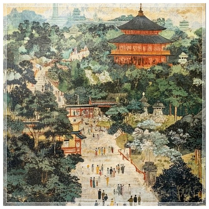 Sự kết hợp giữa cảnh vật phương Tây và nghệ thuật Nhật Bản tạo nên một không gian đậm chất huyền bí, vừa hiện đại, vừa hoài cổ. Những chi tiết nhỏ như mái ngói đỏ, những chiếc cầu vượt qua những hồ nước nhỏ, và những đám mây nhẹ bay trên bầu trời tạo nên một hình ảnh vừa gần gũi, vừa xa vời. Tất cả như đưa người xem vào một thế giới nơi thời gian không còn là điều quan trọng, và cái đẹp không bao giờ phai nhạt.