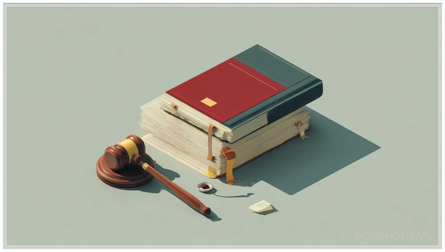 Với nền xám nhẹ nhàng, minh họa isometric của một cuốn sách pháp lý mang đến một không gian tĩnh lặng và trật tự. Cuốn sách được khắc họa sắc nét, các chi tiết của bìa và các trang sách tạo nên sự chắc chắn, thể hiện sự nghiêm túc và đáng tin cậy của lĩnh vực pháp luật. Cạnh của cuốn sách, dù chỉ là một phần nhỏ trong bức tranh, nhưng lại vô cùng nổi bật nhờ độ sắc nét của từng đường nét, tạo cảm giác chắc chắn và đầy kiên định.