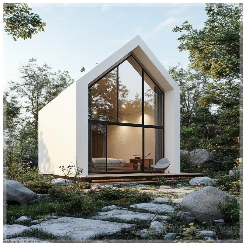 Với thiết kế đơn giản nhưng đầy tính toán, ngôi nhà sử dụng tông màu trắng chủ đạo, giúp không gian trở nên sáng sủa và dễ chịu. Ánh sáng tự nhiên từ các cửa sổ rộng lớn chiếu sáng toàn bộ không gian, tạo nên một bầu không khí thoáng đãng và thư giãn. Từ phòng khách đến phòng ngủ, mọi chi tiết đều được lựa chọn kỹ lưỡng để tạo ra sự hài hòa, tối giản mà vẫn đầy đủ tiện nghi.