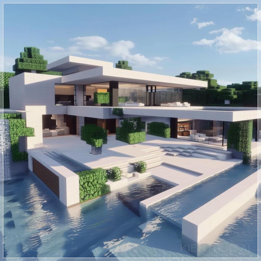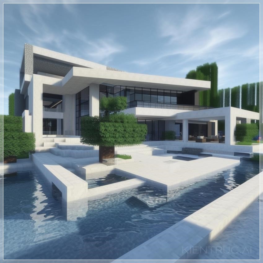 PROMPT: minecraft house modern white concrete and pool, photorealistic 8k --v 6.0 Ý Nghĩa: