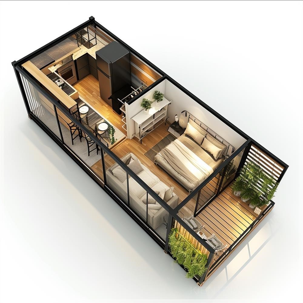 PROMPT: 20ft container house layout plan render from architect --v 6.0 Ý Nghĩa: