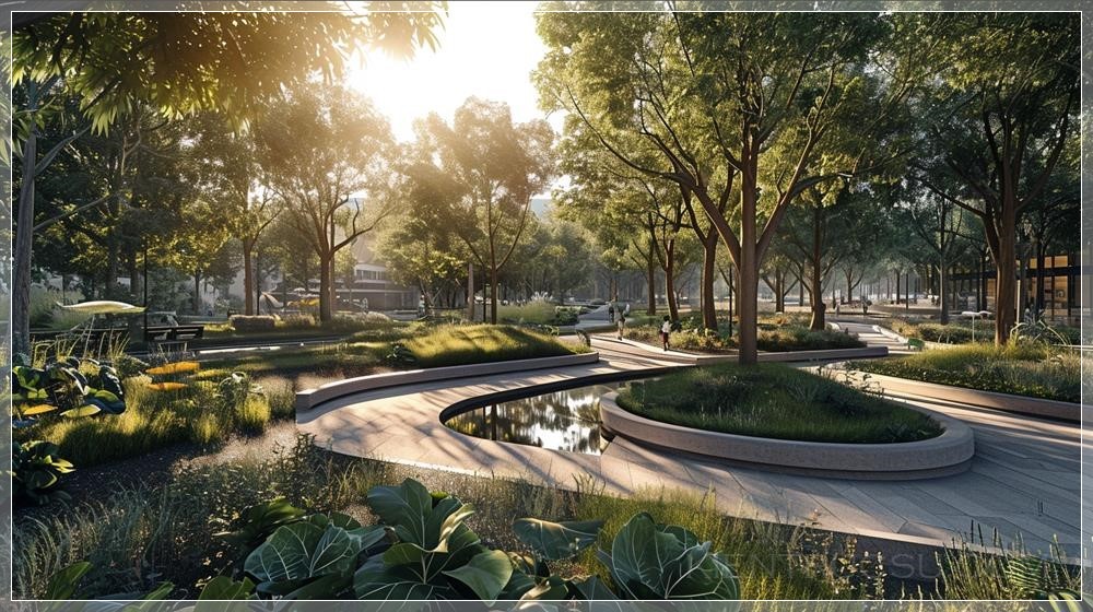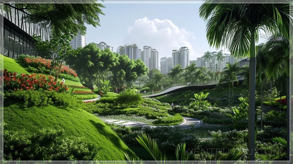 PROMPT: A sustainable urban park that utilizes innovative design and technology to minimize its environmental impact, while also providing a lush oasis for city dwellers --ar 16:9 --no text, people --v 6.0 Ý Nghĩa: