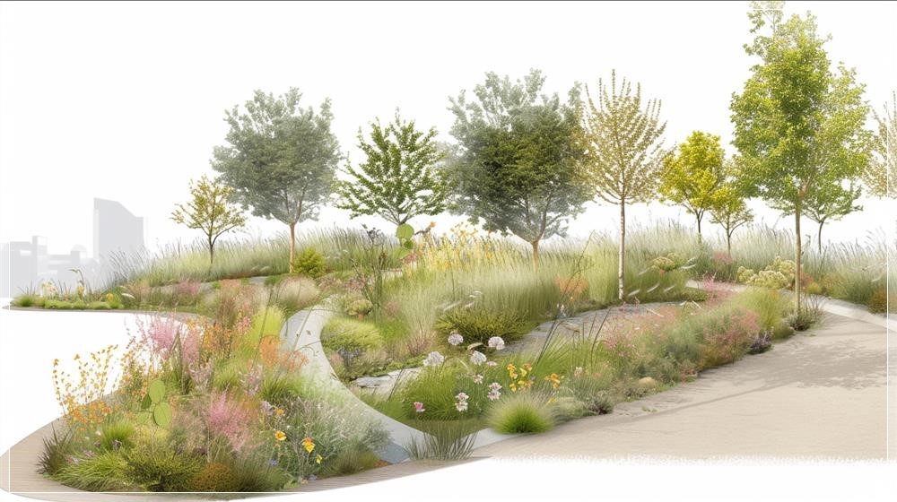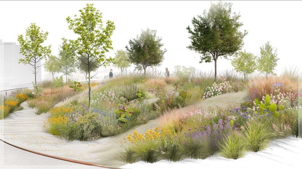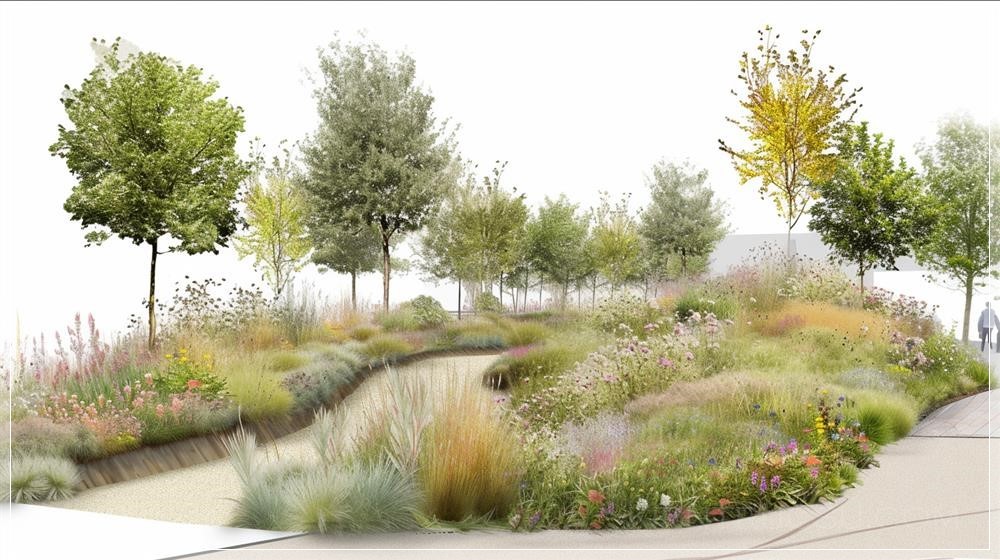 PROMPT: bioswale, England, view from right --ar 16:9 --v 6.0 Ý Nghĩa: